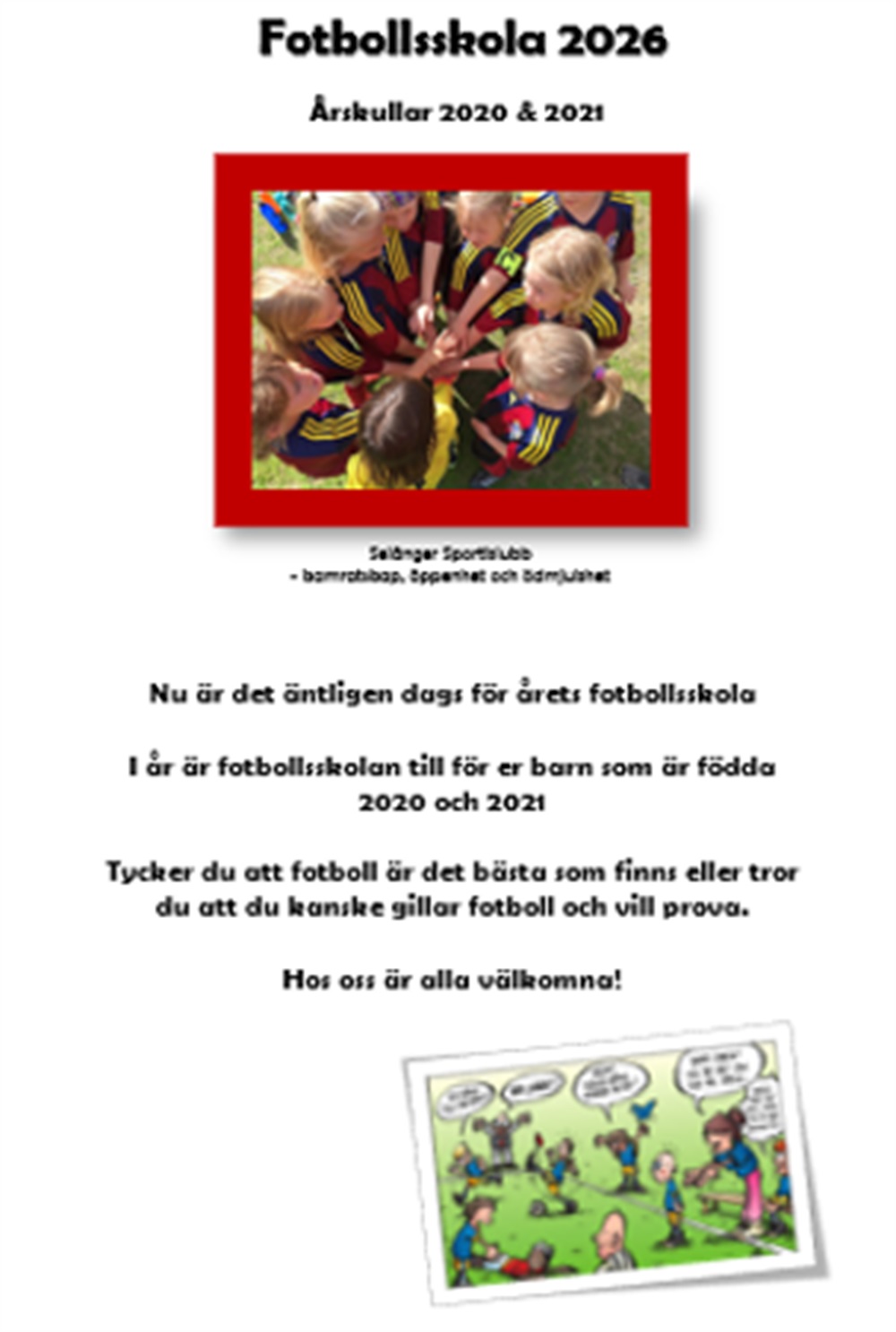 Säsongen 2026 välkomnar vi pojkar och flickor födda 2020 och 2021.